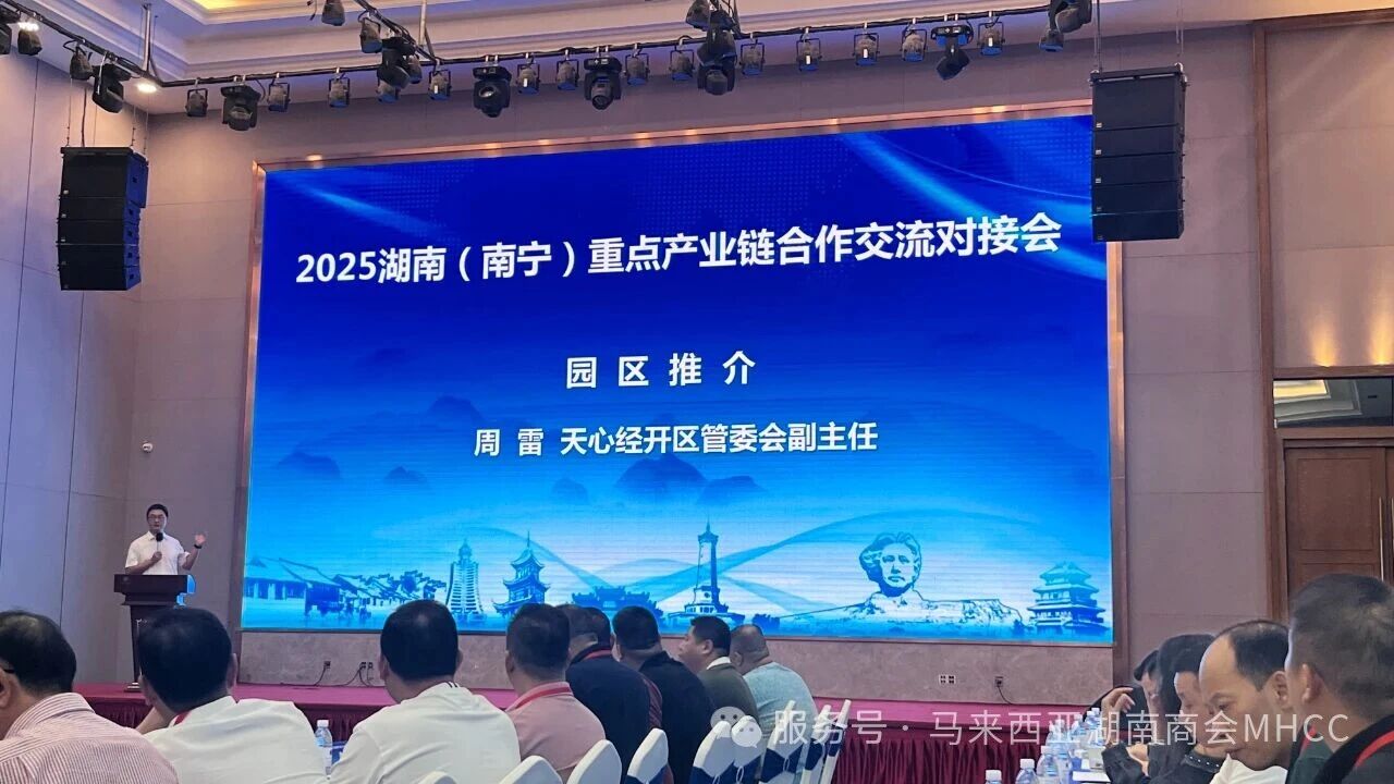 On September 17, 2025, the "2025 Hunan (Nanning) Key Industrial Chain Cooperation Exchange and Matchmaking Meeting", an important supporting event of the 22nd China-ASEAN Expo, was successfully held at the Nanning Yuda International Hotel. Simon Zhou, President of the Malaysia Hunan Chamber of Commerce, and Katherine Zhou, Vice President of its Changsha Office, were invited to attend the meeting.